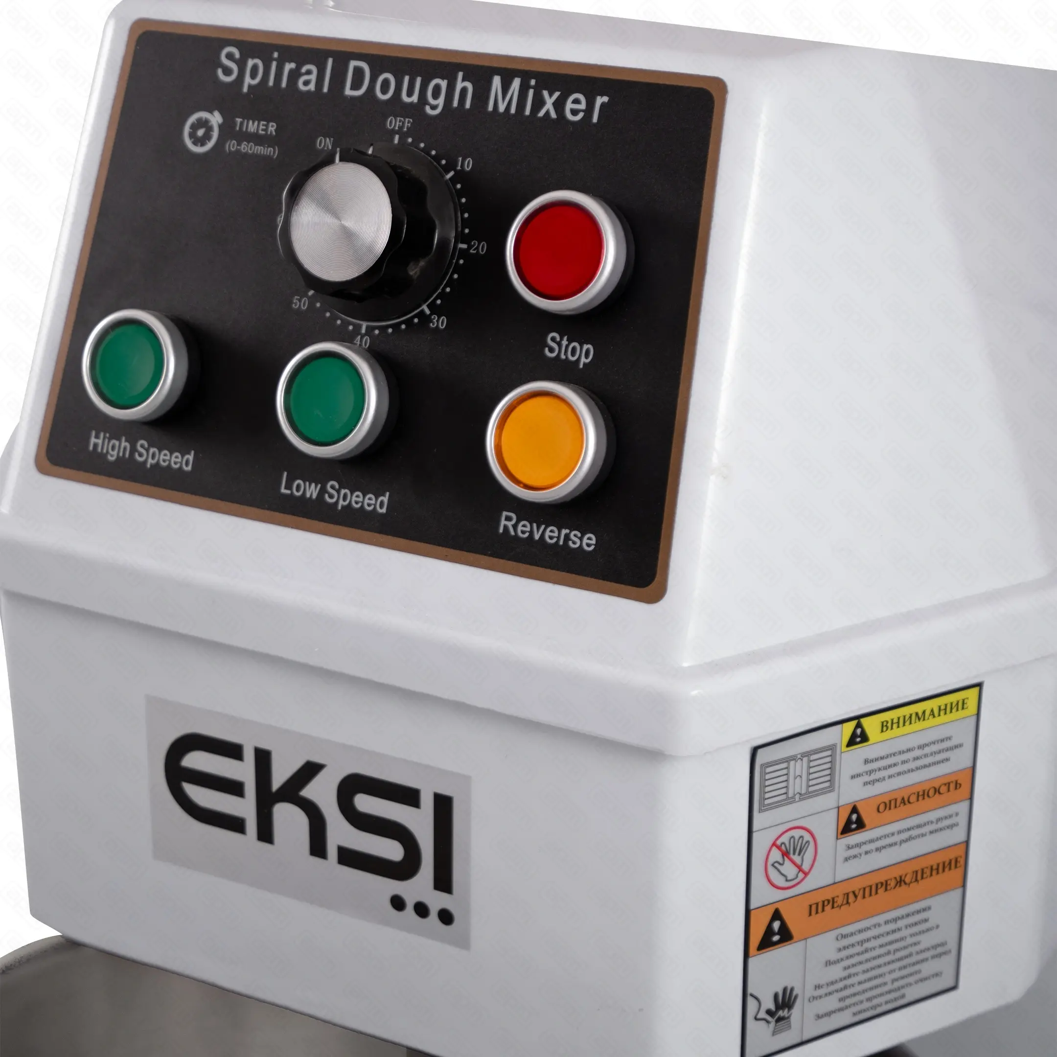 Тестомес спиральный т.м. EKSI, модель SH20B, 2 скорости + инвентер, 220В, 1500Вт, объем дежи 20.5 л, загрузка теста 8 кг, скорость дежи 18/29 оборотов в минуту, скорость насадки 187/293, 700х380х785 мм, вес нетто 85 кг