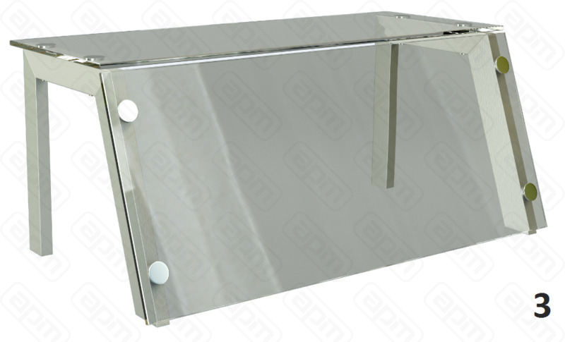 — Полка верхняя из нержавеющей стали марки AISI 304 толщиной 1,2мм и каленого стекла толщиной 8мм, Л-образная