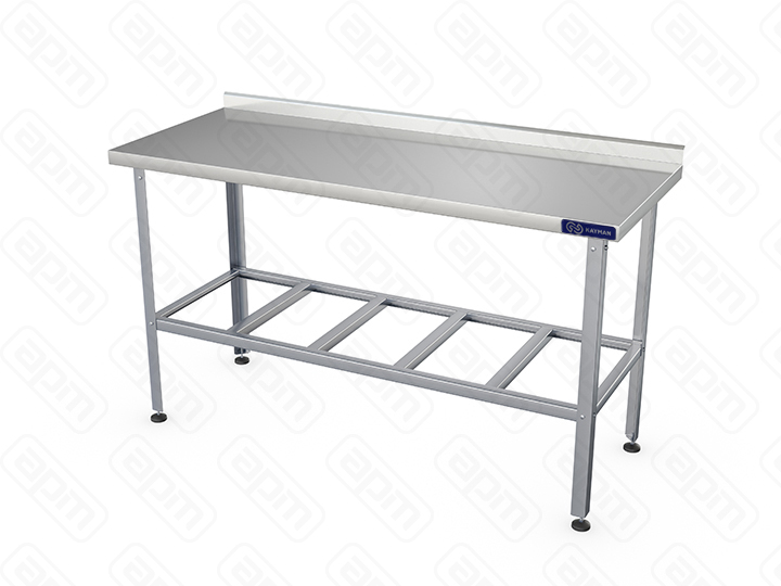 Стол пристенный KAYMAN СП-244/0906-А предназначен для использования на предприятиях общественного питания, торговли, для разделывания и обработки пищевых продуктов, а также в качестве вспомогательной поверхности для кухонного оборудования.