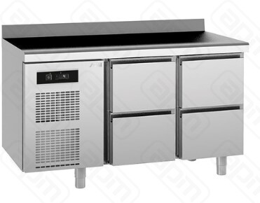 Стол с охлаждаемым шкафом, производства SAGI (Италия) модель KUA4A, предназначен для использования на профессиональной кухне и сочетает в себе функциональность рабочей поверхности и холодильной камеры. Он используется для приготовления и хранения пищевых полуфабрикатов.