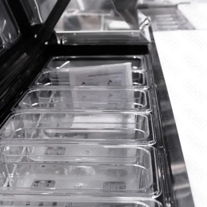 или нержавеющая сталь), Полка верхняя (Располагается над рабочей поверхностью), Защитный козырек (под гастроемкости или пекарские противни) Конденсатор (самоочищающийся - патент), Прозрачная крышка (вместо глухой), 5” колеса Со стопорами или без, 6” ножки Настраиваемая высота, 1/2” ножки Нерегулируемые, Пропан В качестве хладагента, Другие Согласуйте с менеджером свой вариант.