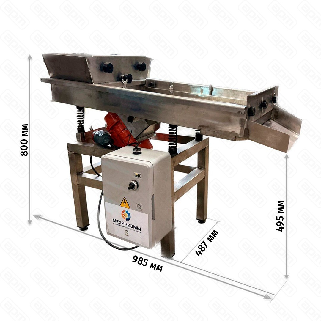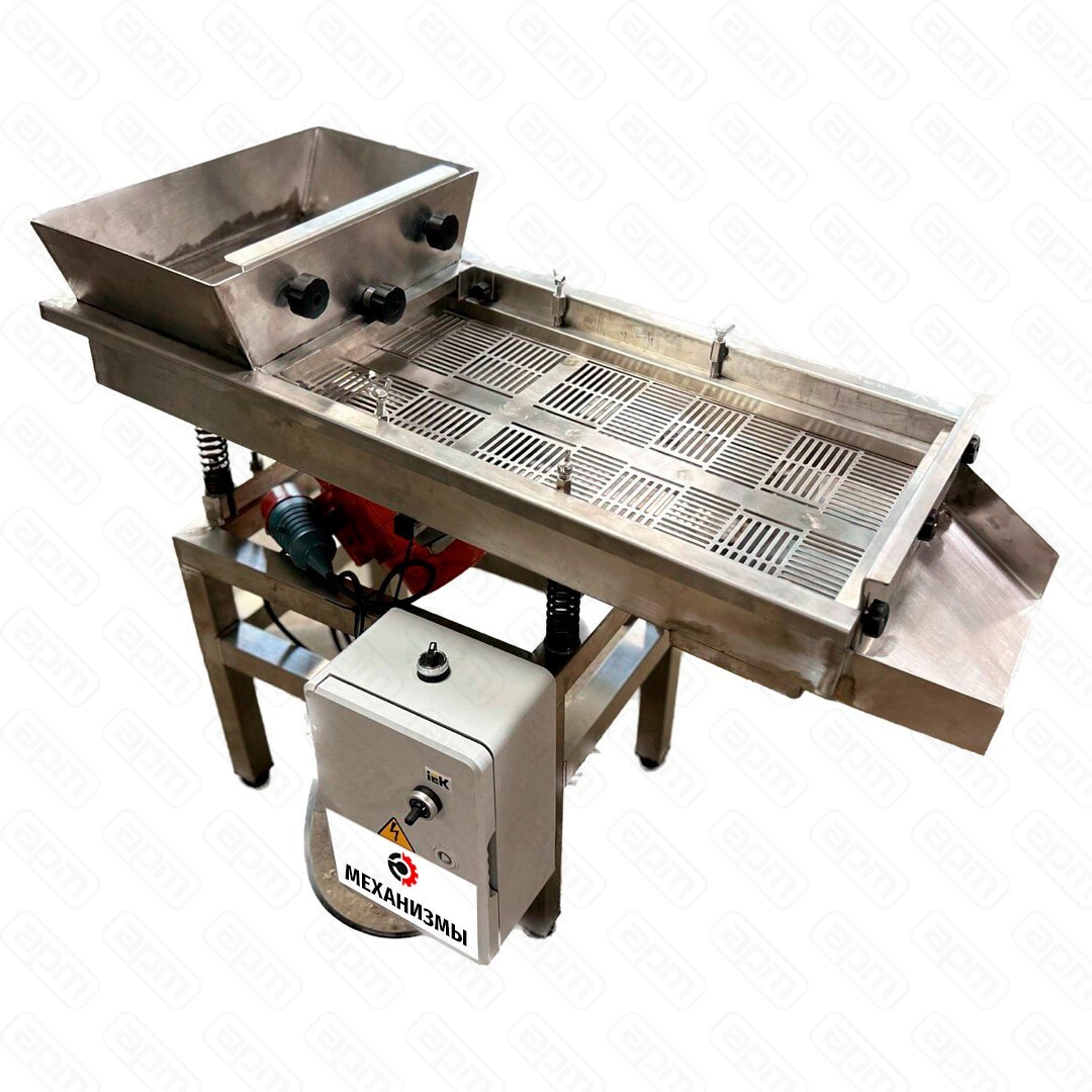 Производительность 300—500 кг/час (зависит от продукта, влажности, сыпучести, размера сит) Высота выгрузки верхний выход - 435 мм, нижний выход - 500 мм Загрузочный бункер 15 л Сито 0,2—10 мм Производитель МЕХАНИЗМЫ Высота выгрузки продукта, верхнее сито 435 мм (можно изменить по согласованию)
